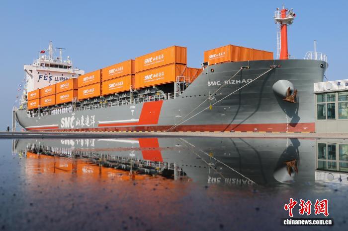 中新社青岛10月16日电 (张孝鹏)“青岛—济州”集装箱航线16日在山东青岛首航。该航线是韩国济州首条国际集装箱定期班轮航线,将以每周一班、航程2天的“海上巴士”运营模式,构建起中国青岛往返韩国济州的“隔日达”贸易圈。