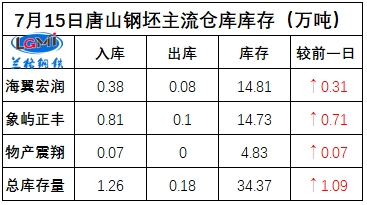 7月15日唐山钢坯库存早报