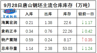 9月28日唐山钢坯库存总量继续下降