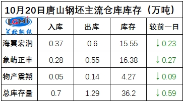 10月20日唐山钢坯库存总量继续下降