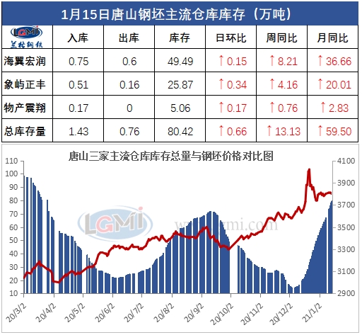 1月15日唐山钢坯库存早报