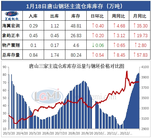 1月18日唐山钢坯库存早报