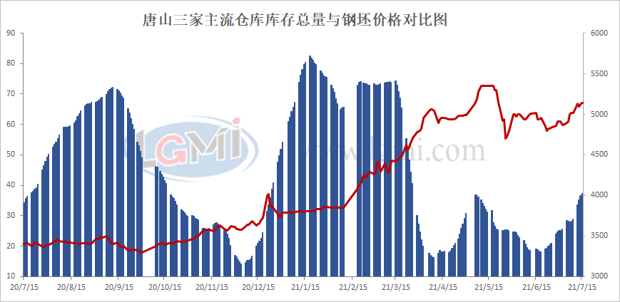 7月16日唐山钢坯库存早报:海翼宏润钢坯库存19.48万吨,较昨日增0.07万吨,入库0.55万吨,出库0.48万吨;象屿正丰钢坯库存14.08万吨,较昨日增0.09万吨,入库0.47万吨,出库0.38吨;物产震翔钢坯库存3.91万吨,较昨日降0.07万吨,入库0.1万吨,出库0.17万吨;三家仓库总库存量为37.47万吨,较上一日增0.09万吨。