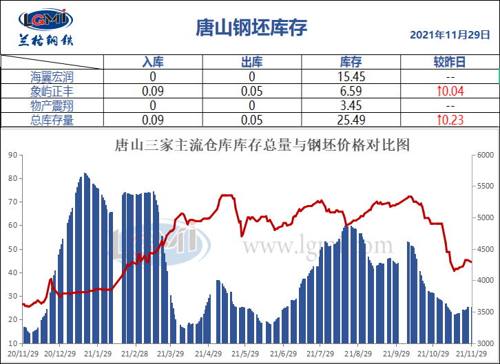 11月29日唐山钢坯库存