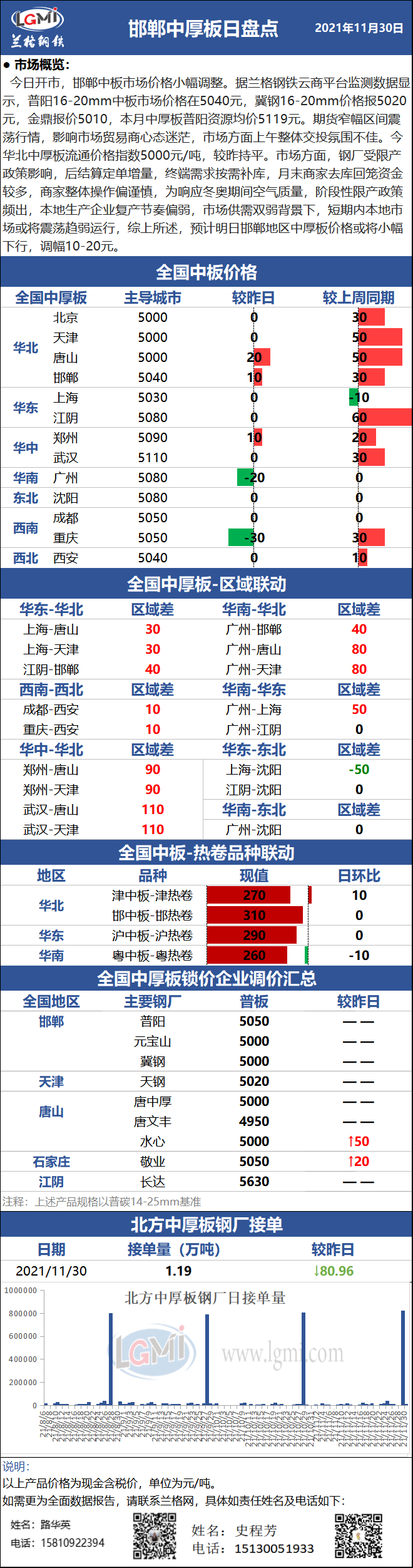 11月30日邯郸中板市场价格小幅调整 期货窄幅区间震荡