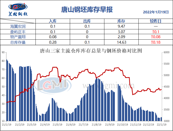1月19日唐山钢坯库存早报
