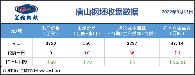- 9月13日全国钢厂建筑钢材调价汇总2022/9/13