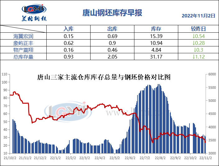 11月2日唐山钢坯库存早报