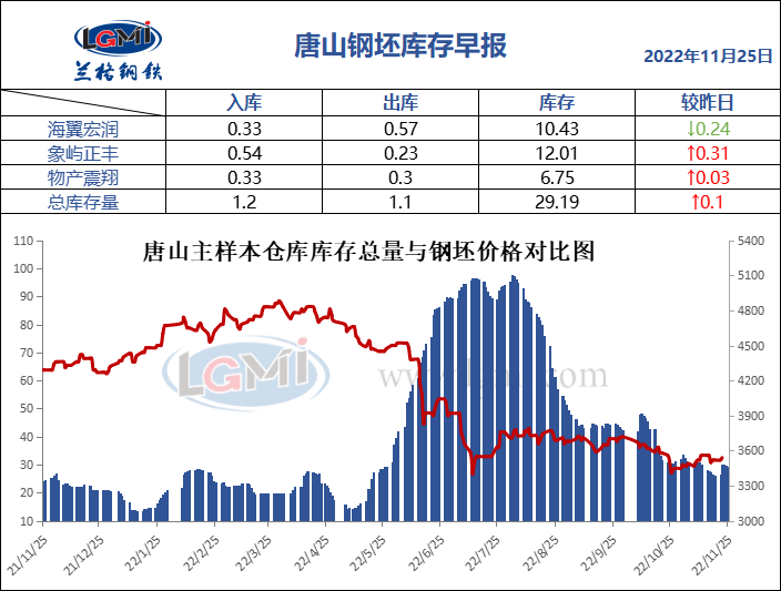 11月25日唐山钢坯库存早报