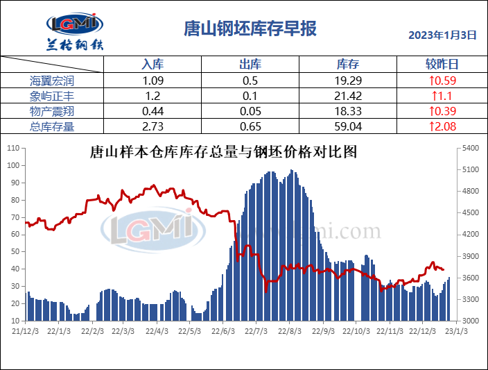 1月3日唐山钢坯库存早报