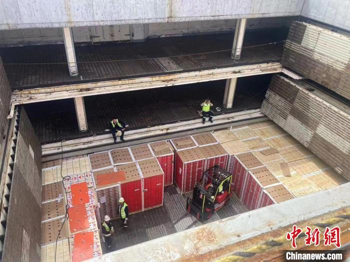 中新网上海1月4日电 (记者 殷立勤)北京时间1月4日,伴随着一声汽笛长鸣,满载着4300余吨智利车厘子的冷藏散货船Regal Bay号,历经1万多公里的海运航程后,顺利抵达上海南港码头,这批从南半球枝头直达而来的车厘子年货,抵沪当日将很快出现在山姆、京东等商家的货架。该批车厘子是我国水果行业首次以独立包船模式,将海外车厘子整船冷藏运输至国内;此次包船由全球领先的物流服务商——东航物流提供供应链服务,为首艘“车厘子包船”定制方案、全程护航落实。