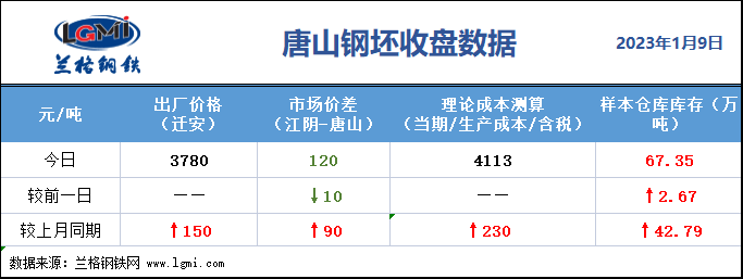 今日唐山迁安普方坯出厂执行3780元含税,较昨日持稳;秦皇岛卢龙普方坯出厂执行3780元含税,较昨日持稳。主导市场价格以稳为主,截至收盘唐山地区仓储现货,贸易含税报价3860元左右;华东市场报价在3980-3990元之间。截至今晨8:00唐山丰润三家仓库钢坯库存总量约67.35万吨,单日入库总量2.89万吨,出库总量0.22万吨。