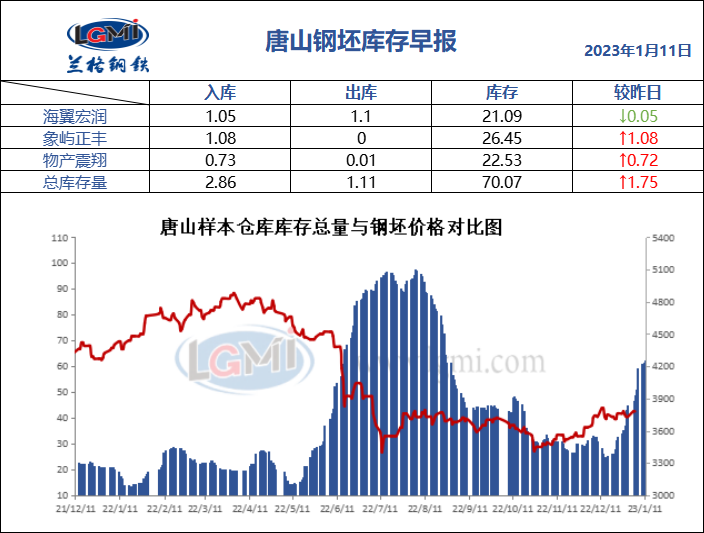 1月11日唐山钢坯库存早报
