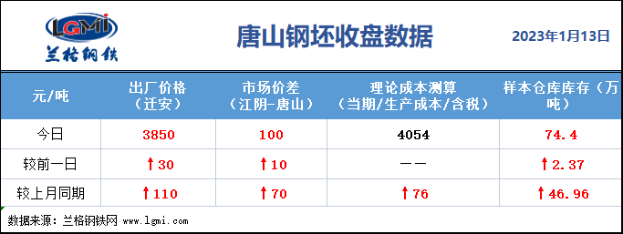- 唐山钢坯收盘:价格上涨 终端收货量有限2023/1/13