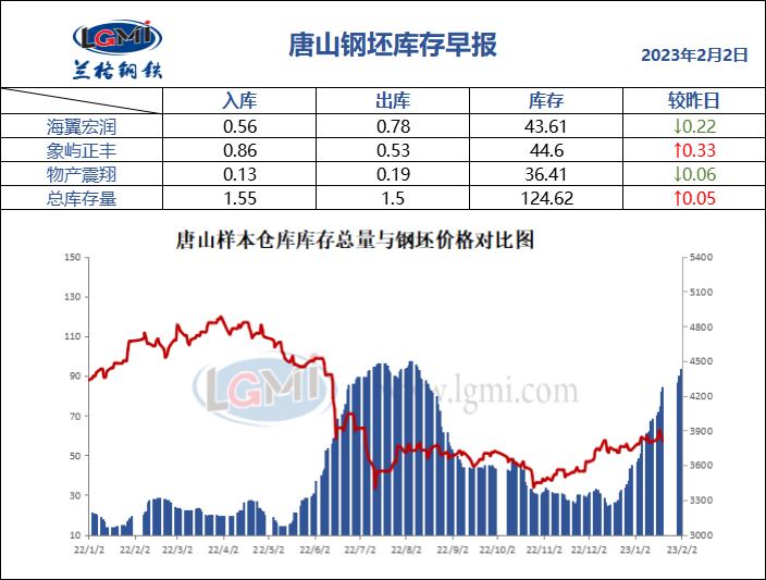2月2日唐山钢坯库存早报