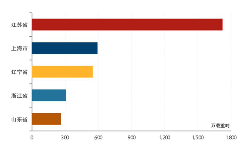 2022年我国造船完工量位居前5名的省市地区。图片来源:中国船舶工业行业协会