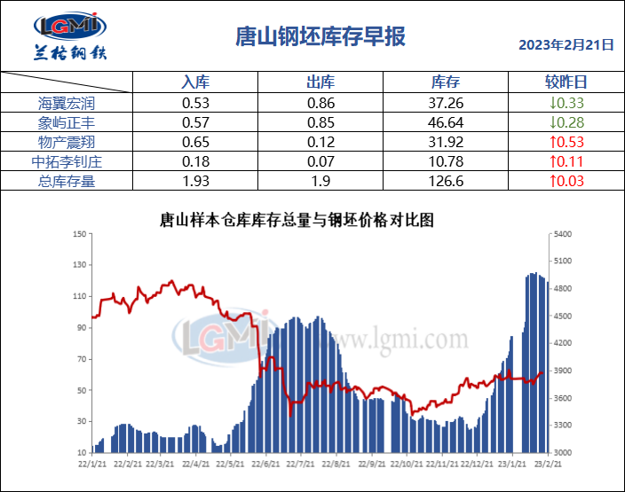 2月21日唐山钢坯库存早报
