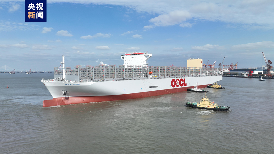 2月21日上午,我国建造的新一代高性能超大型集装箱船“中远川崎335”轮,在长江引航中心5名引航员的引领下,从江苏南通出江试航。