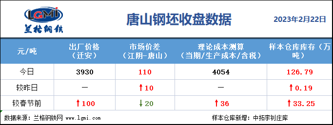 - 唐山钢坯收盘:钢坯价格坚挺 钢厂利润暂时修复2023/2/22