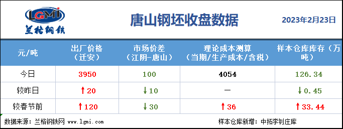 - 唐山钢坯收盘:价格窄幅盘整 成交一般2023/2/23