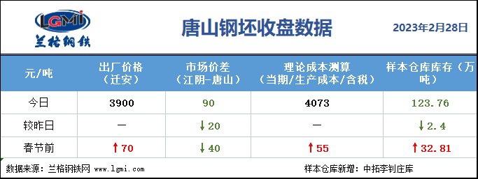 - 唐山钢坯收盘:价格趋弱调整 成本支撑增强2023/2/28