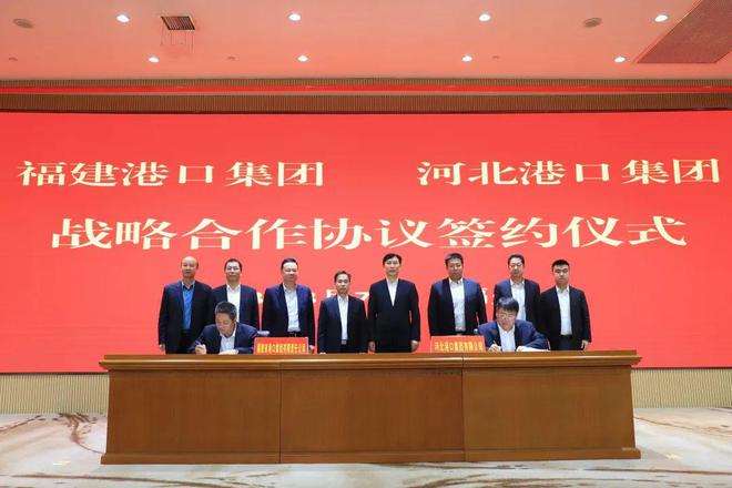 福建港口集团党委书记、董事长陈志平,河北港口集团党委书记、董事长曹子玉出席仪式并见证了签约,福建港口集团发展改革部经理王海洪、河北港口集团总经理助理孟凡晖分别代表双方签署了《战略合作协议》。