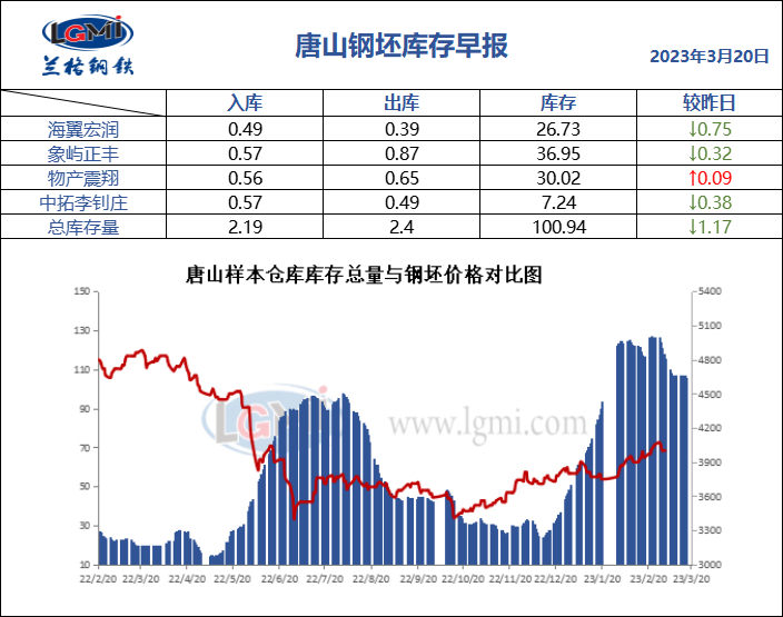 3月20日唐山钢坯库存早报