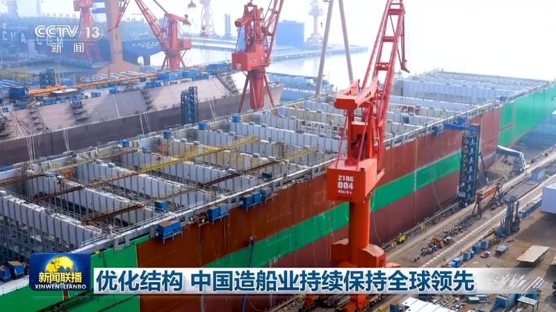 央视网消息(新闻联播):最新数据显示,今年前两个月,我国造船业新接订单量占到全球市场份额的62%。截至2022年,已连续13年位居全球第一。在市场份额不断扩大的同时,通过优化产品结构,大量高技术船舶成为中国造船业高质量发展的新亮点。