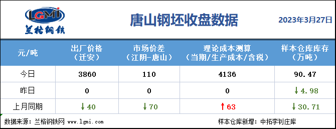 - 唐山钢坯收盘:市场缓慢去库 需求维持平稳2023/3/27