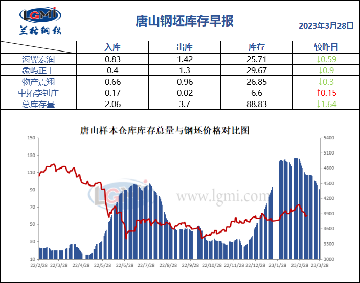 3月28日唐山钢坯库存早报