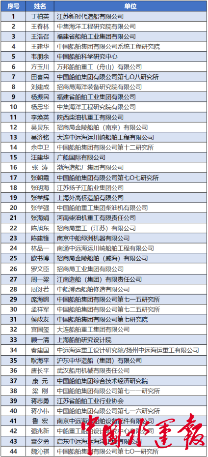 中国船舶工业行业协会标准化专家委员会委员名单