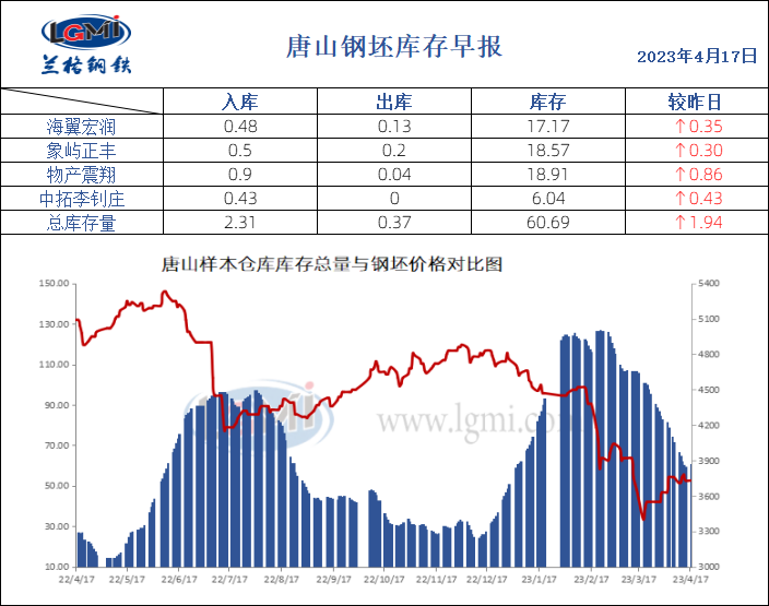 4月17日唐山钢坯库存早报