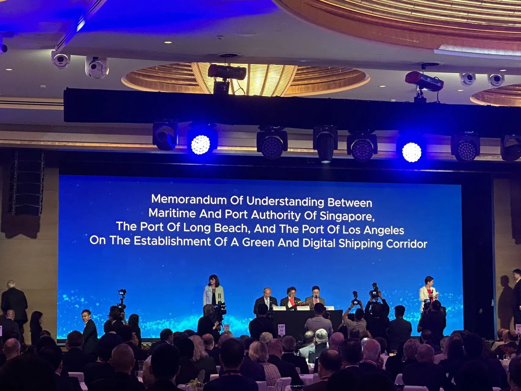 2023年4月24日,新加坡航运周(SMW)的开幕式上,新加坡海事及港务局 (MPA)、洛杉矶港(POLA)和长滩港(POLB)在C40城市气候领导联盟的支持下,签署了谅解备忘录 (MoU),以建立新加坡和圣佩德罗湾港口综合体(洛杉矶-长滩)之间的绿色和数字化港口航运走廊,支持海运业的脱碳并通过数字化提高运营效率。