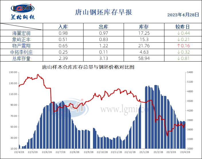 4月28日唐山钢坯库存早报