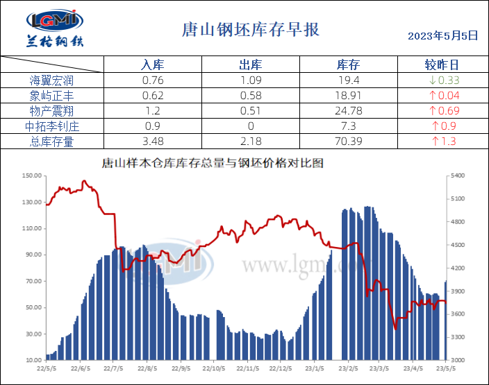5月5日唐山钢坯库存早报