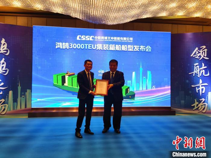中新网广州5月26日电 (郭军 夏小健)5月26日,又一型中国拥有完全自主知识产权的集装箱船在广州发布。该型船是中国船舶集团旗下黄埔文冲公司自主研发的“鸿鹄”系列3000箱集装箱船,其面世将为国际贸易提供又一绿色经济的航运方案。