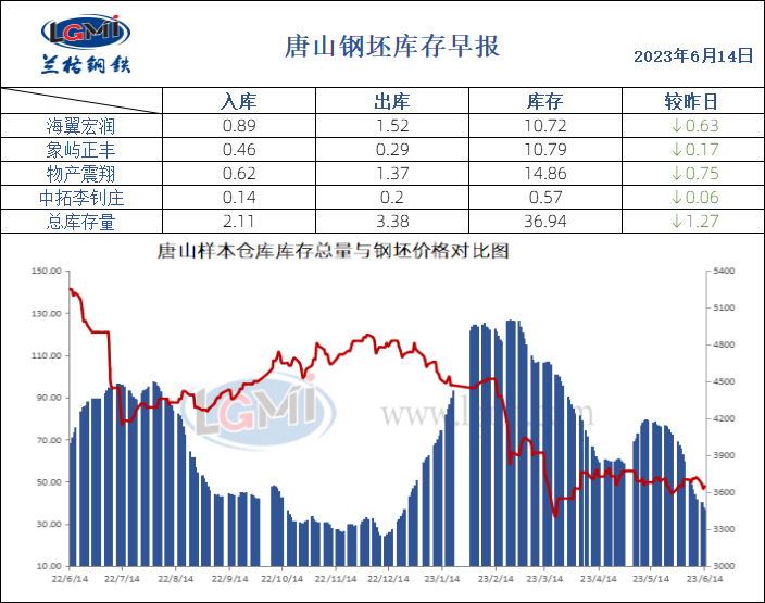 6月14日唐山钢坯库存早报
