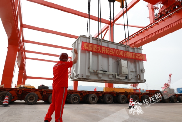 “果园重大件码头承袭了重庆港大件货物中转服务品牌。在制造业的不断发展下,400吨已无法满足部分大型、重型的设备。”周荣华说,因此,果园重大件码头安装有1台可一次吊装重达1000吨的重型设备的桥式起重机,将重庆港大件码头一次起吊能力提升至1000吨。