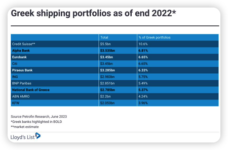 截至2022年底,瑞士信贷(Credit Suisse)仍是希腊航运业最大的单一贷款人,拥有55亿美元的投资组合。6月12日,瑞银集团宣布完成对瑞士信贷的紧急收购,从而形成一家资产负债表达1.6万亿美元(约合11.43万亿元人民币)的特大型银行,瑞士信贷的船舶融资活动正在接受评估。据悉,部分希腊船东在今年年初对部分贷款进行了再融资,但总体而言,该银行的贷款组合基本保持不变。