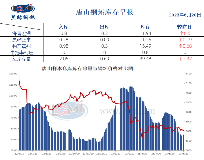 6月20日唐山钢坯库存早报