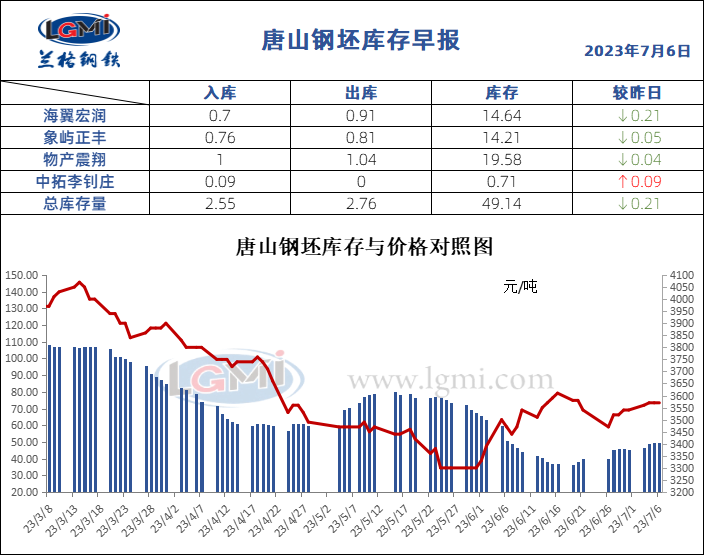 7月6日唐山钢坯库存早报