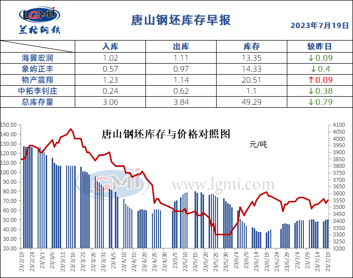 - 7月19日唐山钢坯库存早报2023/7/19