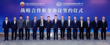 就在此次2艘订单船舶签约前一天,7月24日下午,中远海运能源与中石油国事在上海签署战略合作框架协议。中远海运能源董事长、党委书记任永强,中石油国事执行董事、党委书记武军利出席签约仪式并致辞。中远海运能源董事、总经理朱迈进主持签约仪式。中石油国事、中石油华东公司、中石油海运公司、中远海运能源有关领导和部门负责人参加签约仪式。
