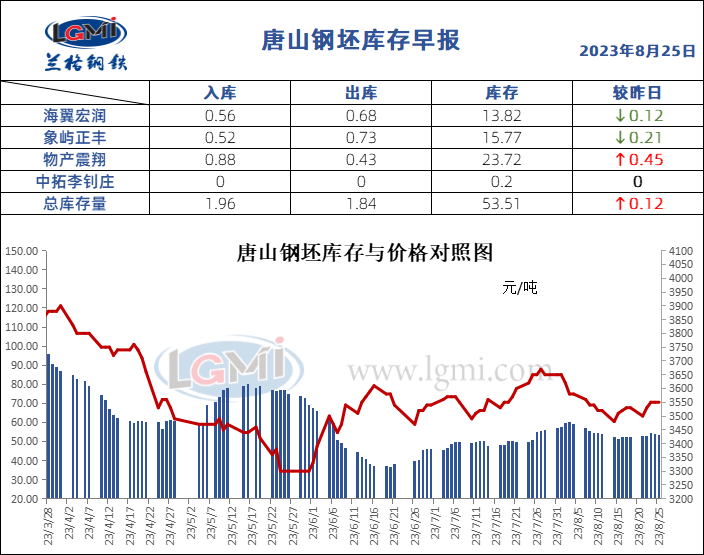 8月25日唐山钢坯库存早报