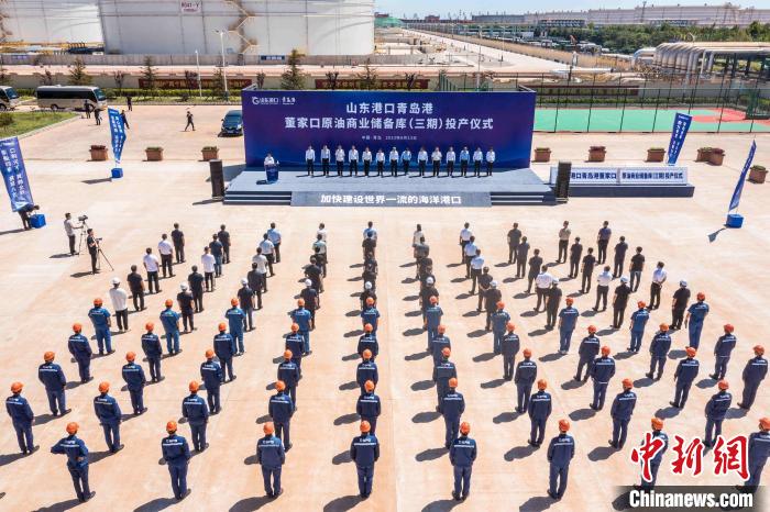 中新网青岛8月24日电(蔡亚群)山东省港口集团(简称“山东港口”)青岛港董家口原油商业储备库(三期)投产仪式23日在青岛西海岸新区举行。至此,董家口港区原油商业储备库一期、二期、三期工程共计520万立方米原油储罐及配套设施全部建成投产,这标志着中国沿海港口单体容量最大的油品库区全面建成投产。