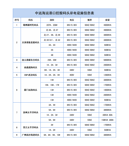 附:中远海运港口控股码头岸电设施信息表
