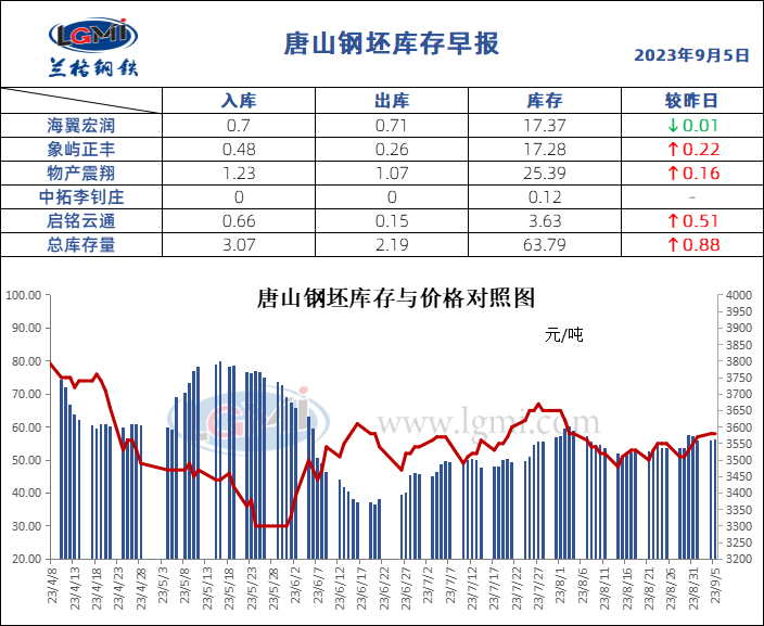 9月5日唐山钢坯库存早报