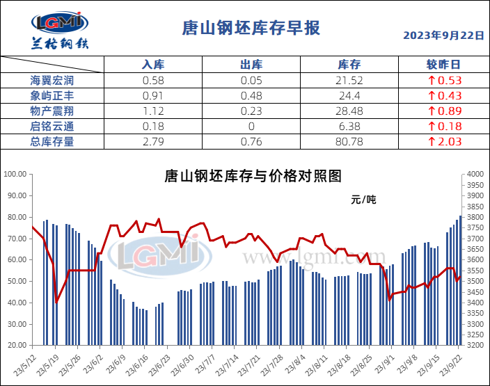 9月22日唐山钢坯库存早报