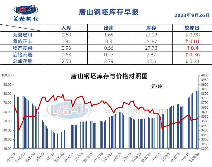 9月26日唐山钢坯库存早报