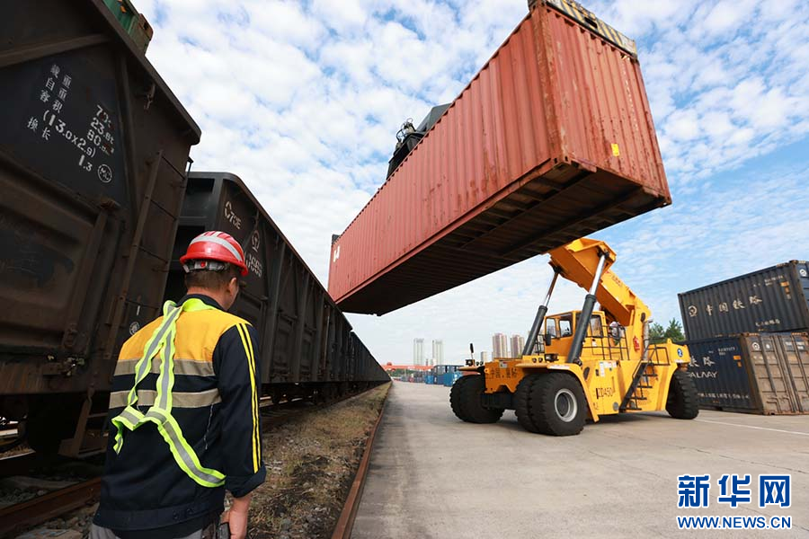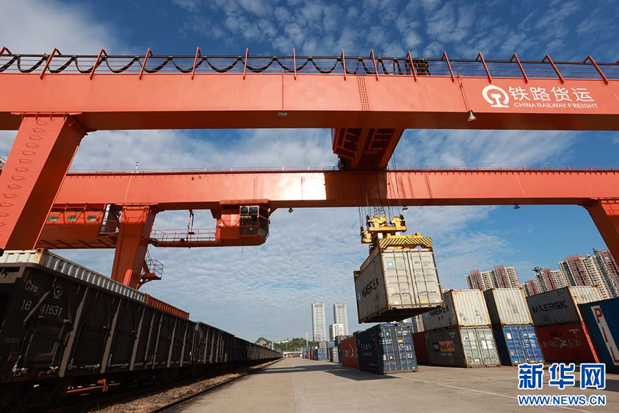 图为铁海联运班列货物在宜昌东站货场装运 新华网发 陈龙摄